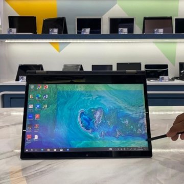 Layar: 14″ Touchscreen 360ยฐ โ Navigasi sentuh yang presisi, bisa dilipat menjadi mode tablet atau tent untuk presentasi.